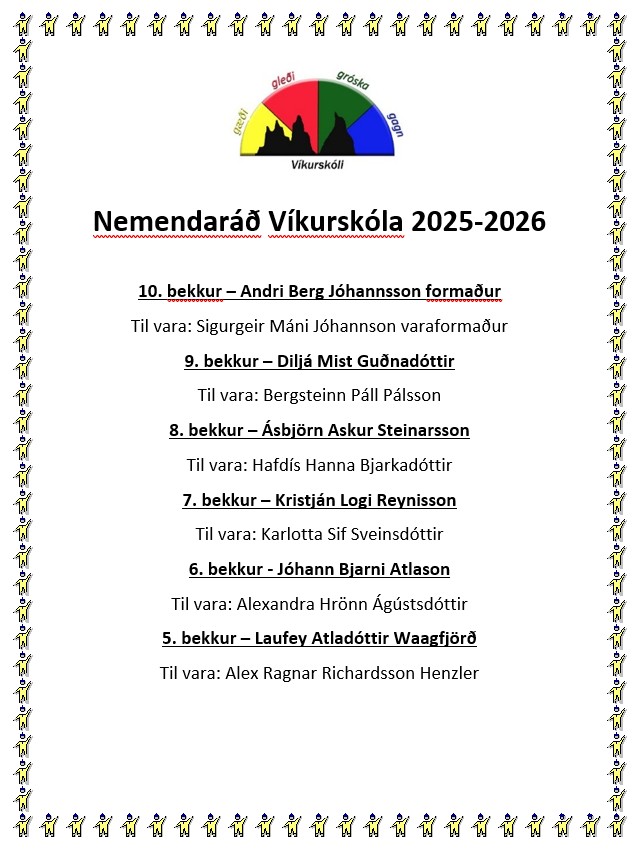 Tilkynningar um leyfi eða veikindi nemenda: 487-1242 eða á netfangið vikurskoli@vikurskoli.is